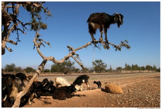 Zehn Ziegen in einem Baum. Was treibt die Tiere dort hinauf? Die Antwort ist einfach, ihre Leckermäulchen.